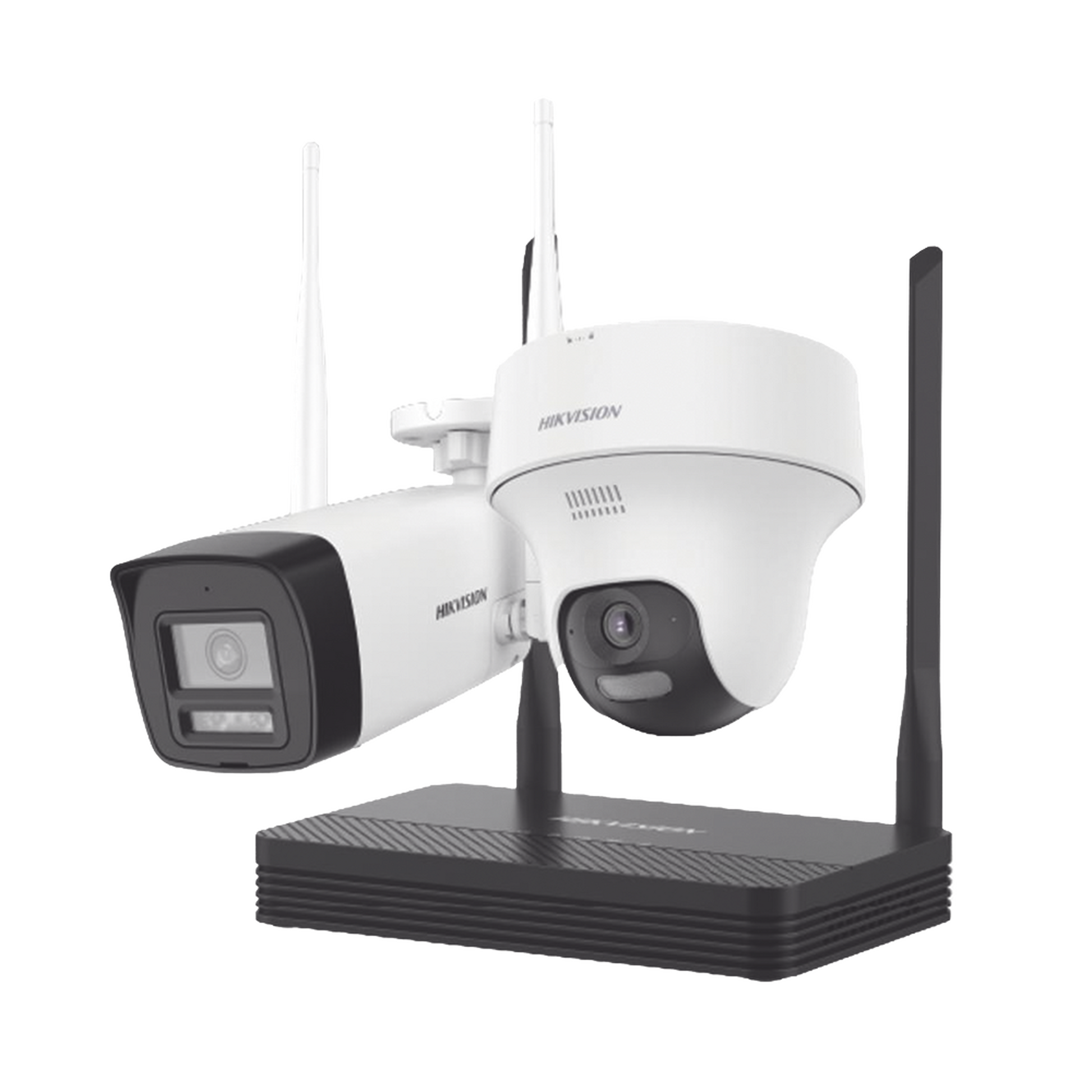 Kit IP Inalámbrico 2 Megapíxel / NVS 4 Canales / 1 Cámara Bala Exterior + 1 Cámara Turret Interior con Lente 2.8 mm y Dual Light